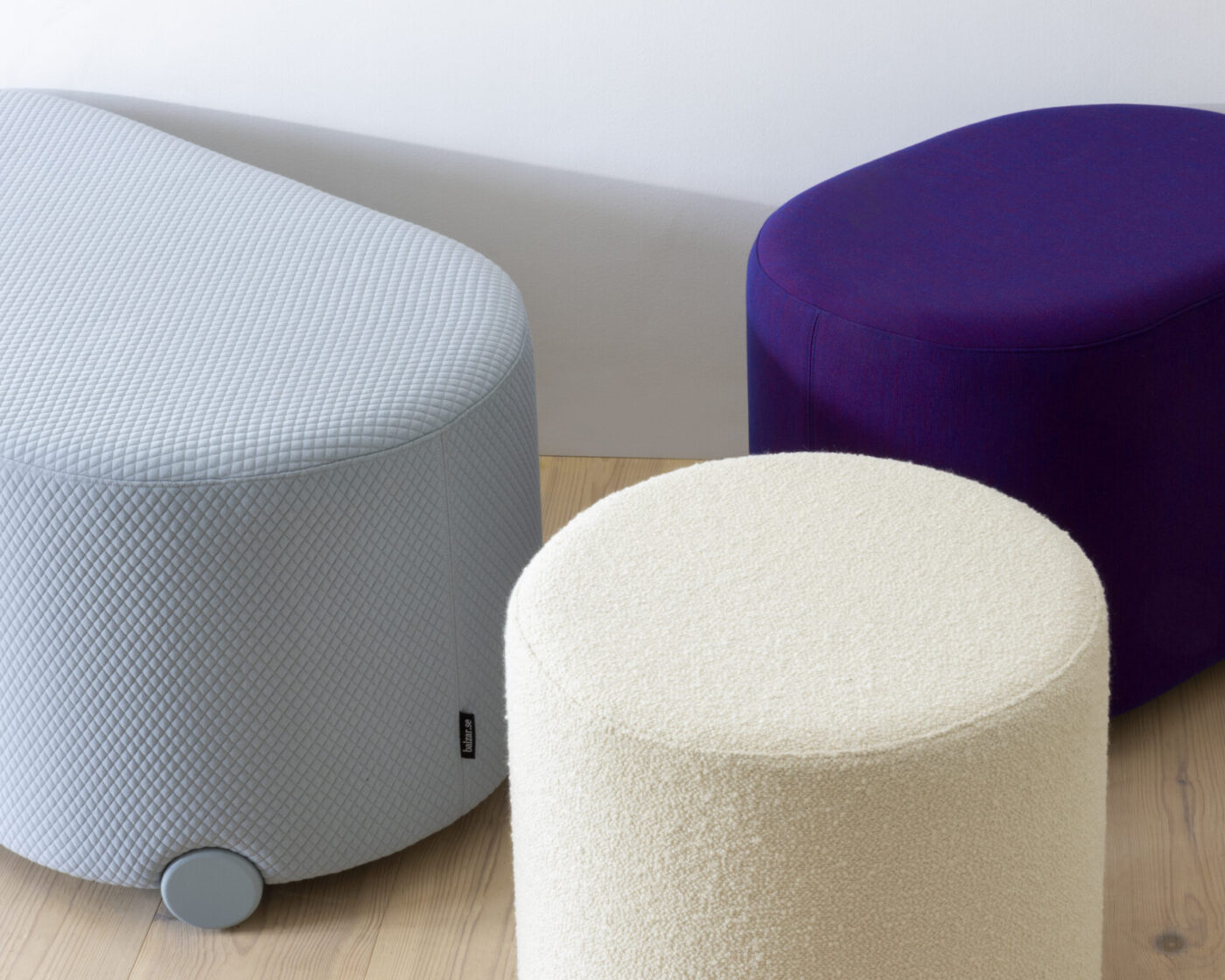 Circular has a seat height of 450 mm and is available in three different sizes: Small, Medium, and Large. The legs can be made from various wood types and colors. It is also available in multiple textiles and leather options.