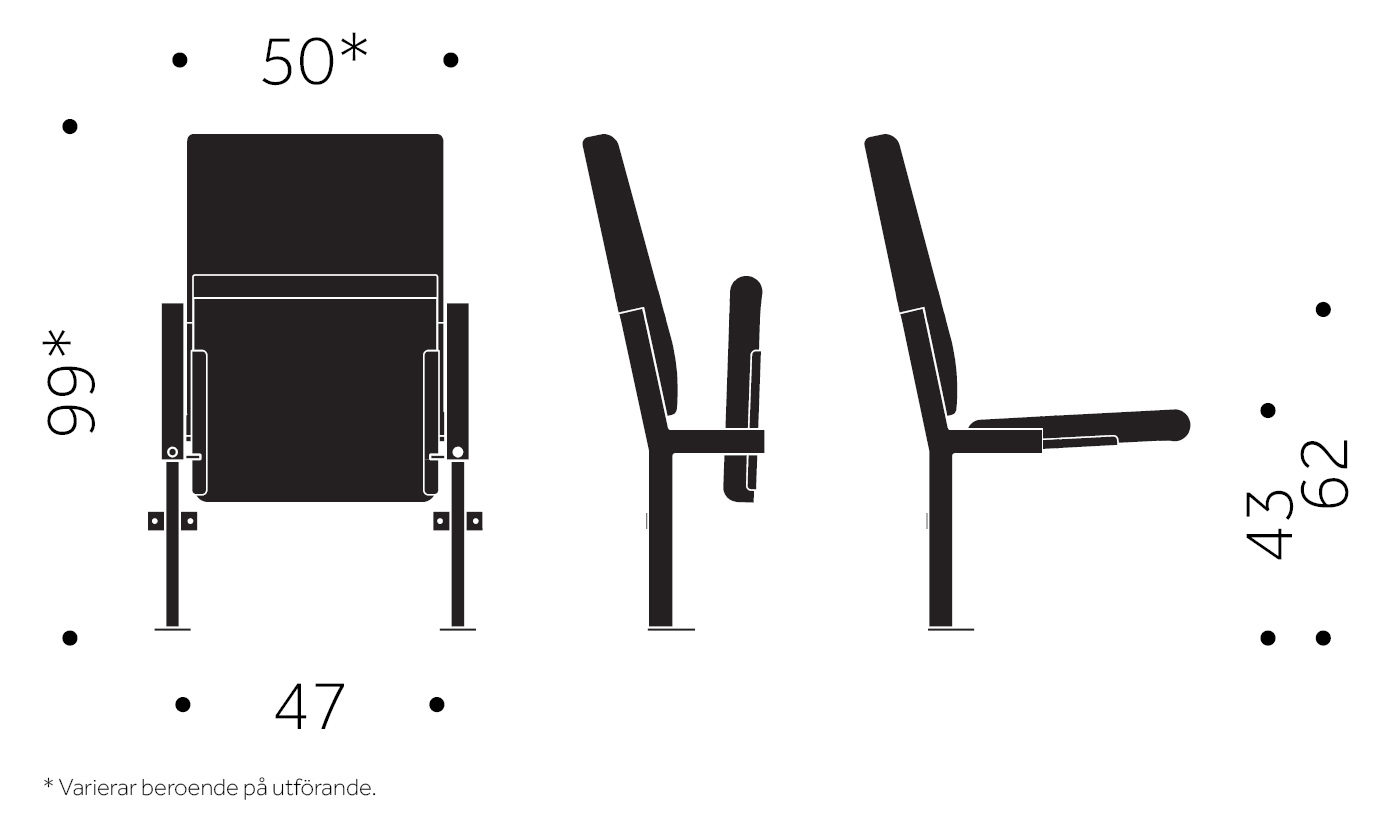 Balzar Beskow's most common adutorium chair together with KS-401 mainly for the very good function and great variation possibilities. The quality of the chair is high. The model is delivered to most of the educational premises such as universities, colleges and primary schools, but also occurs in other contexts. All Balzar Beskow's auditorium chairs are manufactured in our own factory in Mönsterås and assembled by our own crew with long experience of assembling auditorium chairs.