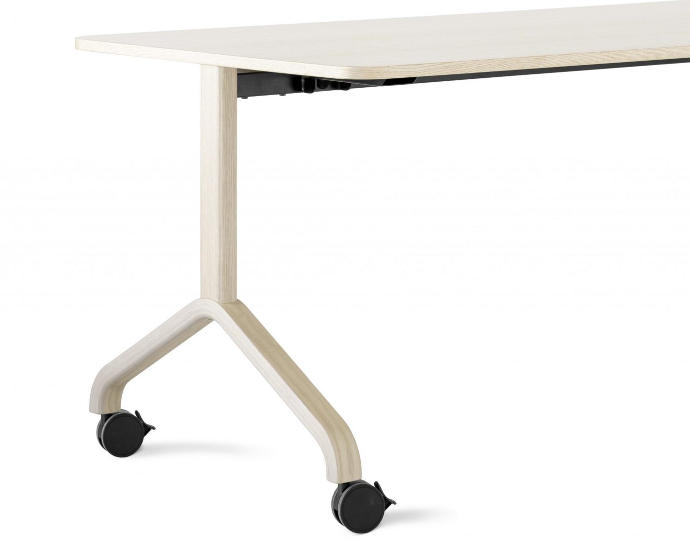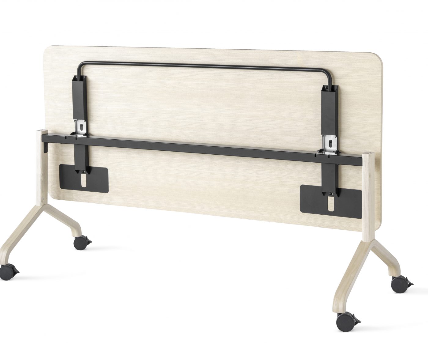 Mobil Wood is a version of the Mobile folding table with wooden legs. In all other aspects it is the same table. Many different sizes, round top and extras as modesty panel in felt and power outlets in the frame are all possible. Choose wood, top surface and color to make the table fit in to your interior.