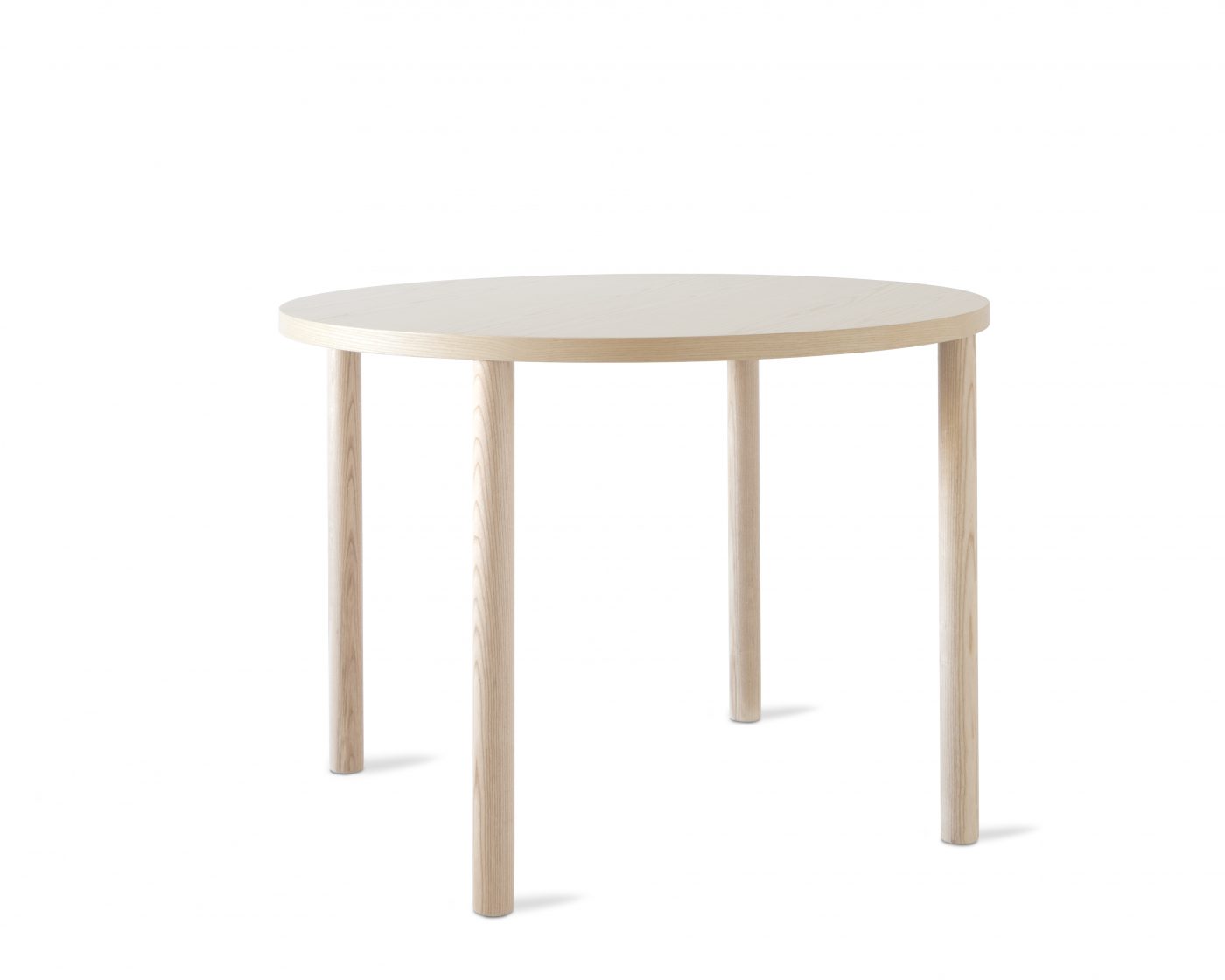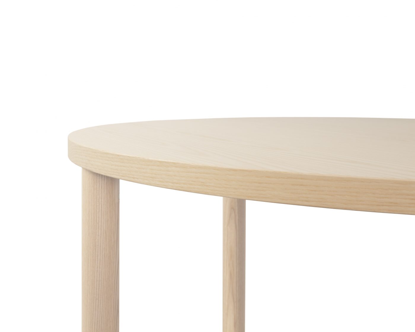 Skivan utförs i fanér, laminat eller linoleum och har en tjocklek på 30 mm med kantlist. Benen tillverkas i massivträ och erbjuds i björk, ask eller ek, med lack eller pigmenterad lack som ytbehandling. Kombinationen av form, material och konstruktion ger ett tidlöst runt bord med ett lugnt och genomarbetat uttryck.