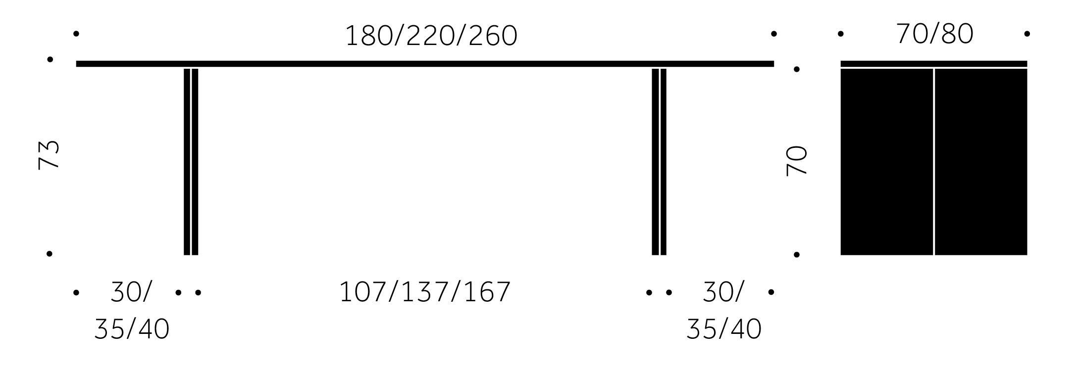 Den mest framstående egenskapen hos Primo Extend är den förlängda bordsskivan, vilket möjliggör sittande även på gavlarna.