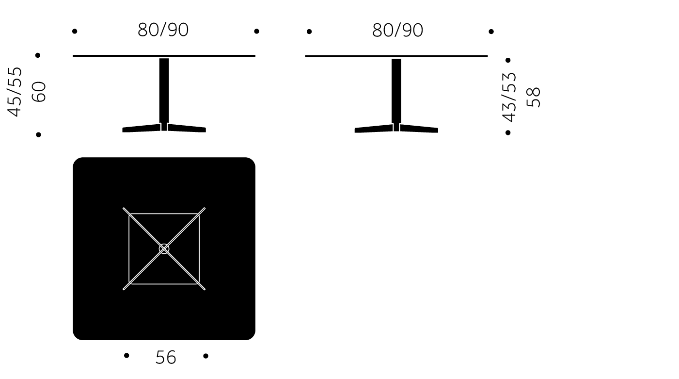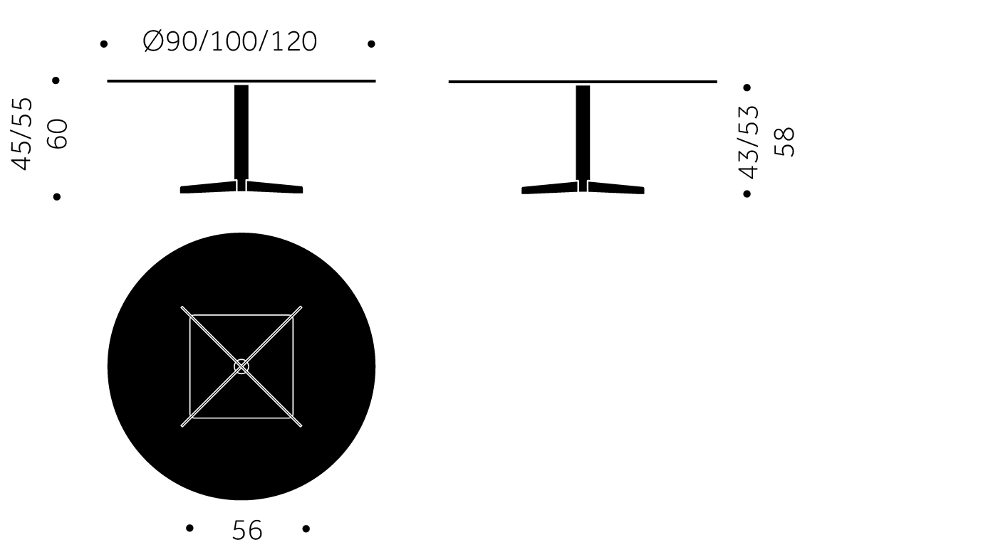 Stativen består av X-fötter som består av platta ståldelar som monteras på plats när bordet monteras där det ska brukas. Detta göra att fötterna kan ha en annan ytbehandling än stolpen i stativet, till exempel krom fot och lackad stolpe, eller en färg på foten och en annan på stolpen.