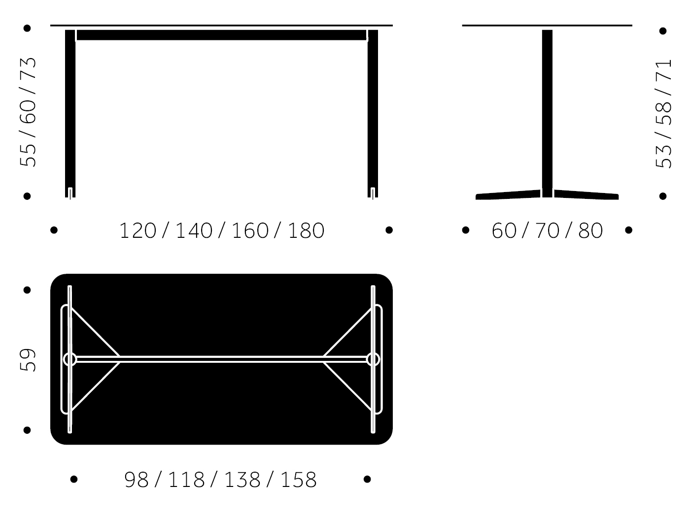 Stativen består av T-fötter som består av platta ståldelar som monteras på plats när bordet monteras där det ska brukas. Detta göra att fötterna kan ha en annan ytbehandling än stolpen i stativet, till exempel krom fot och lackad stolpe, eller en färg på foten och en annan på stolpen.